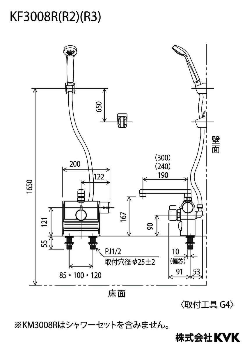 デッキ形サーモスタット式シャワー 右ハンドル仕様 (240mmパイプ付) メッキワンストップシャワーヘッド付