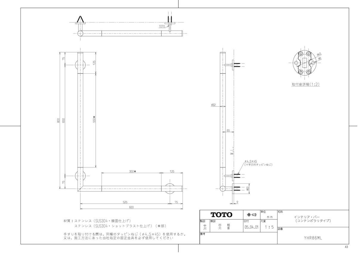 手すり コンテンポラリ L型 インテリア・バー(コンテンポラリタイプ)