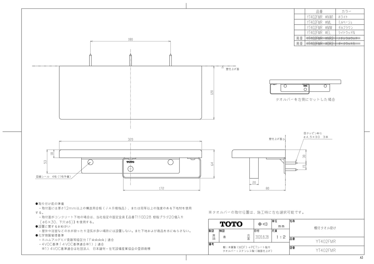 TOTO 棚付タオル掛け