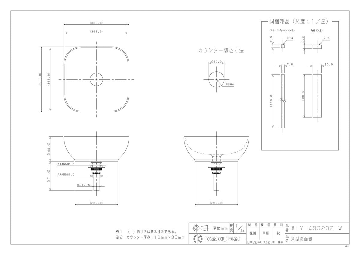 角型洗面器