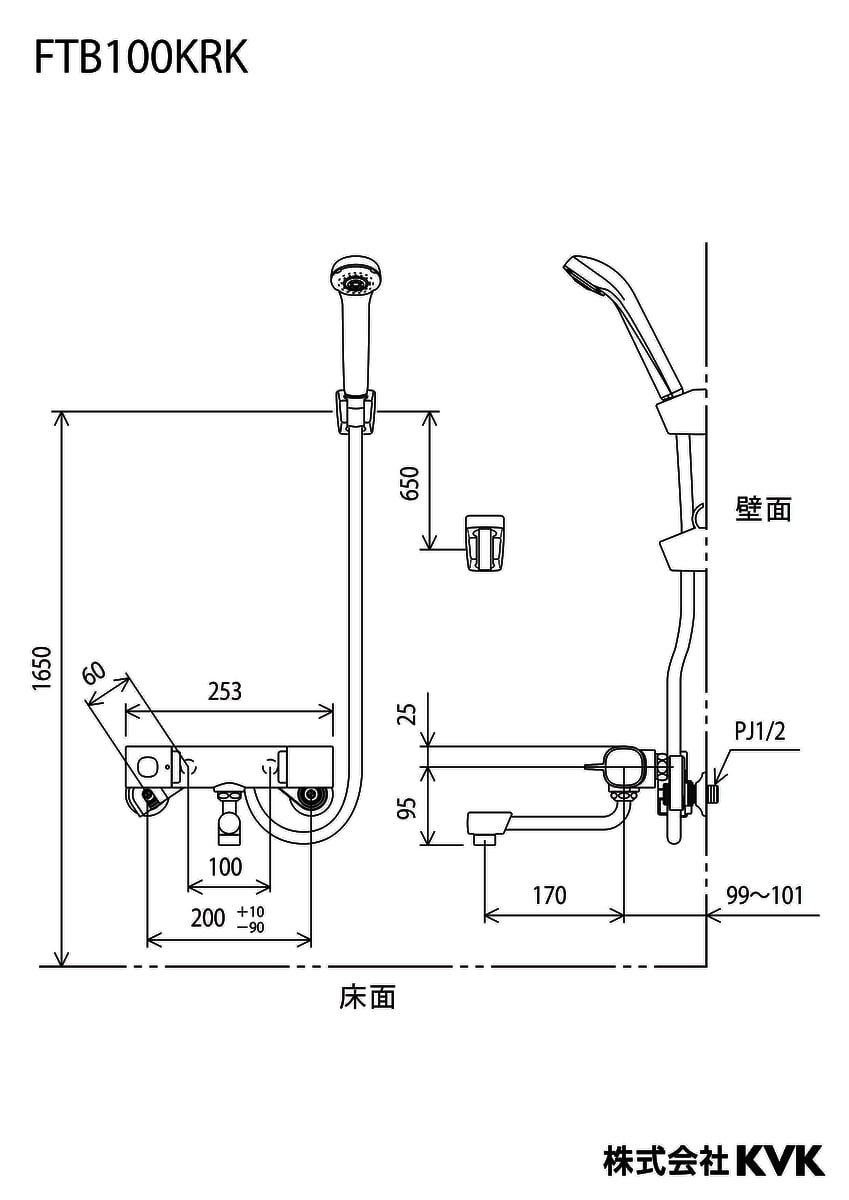 サーモスタット式シャワー(楽付王)・170mmパイプ付