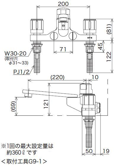 ●1回の最大設定量(ℓ): 約360