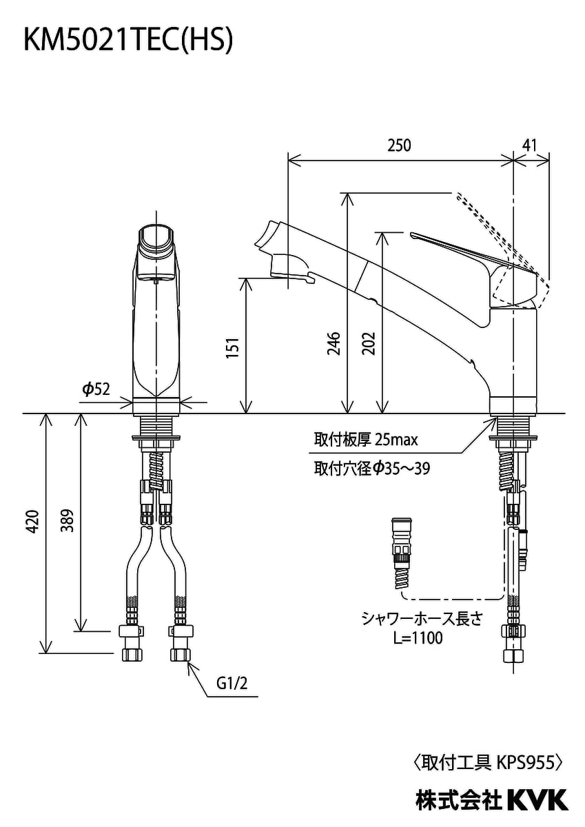 シングルレバー式シャワー付混合栓(撥水)eレバー