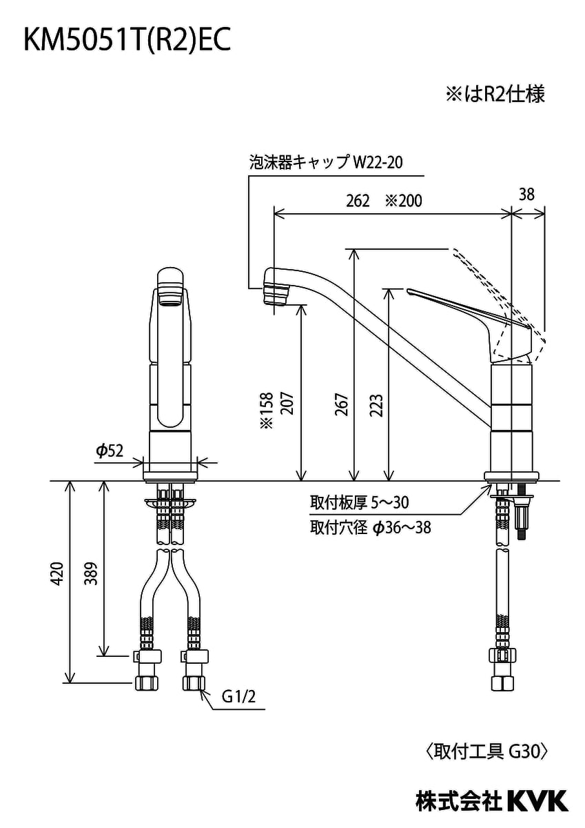 ●商品名: シングルレバー式混合栓(eレバー)200mmパイプ付