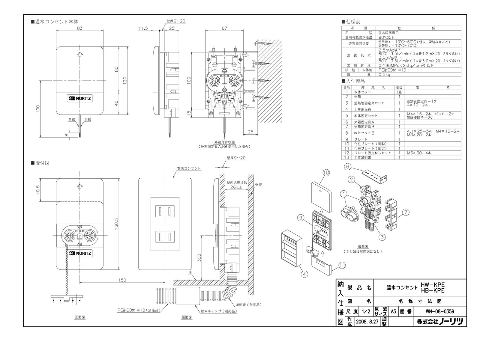 温水コンセント HW-KPE
