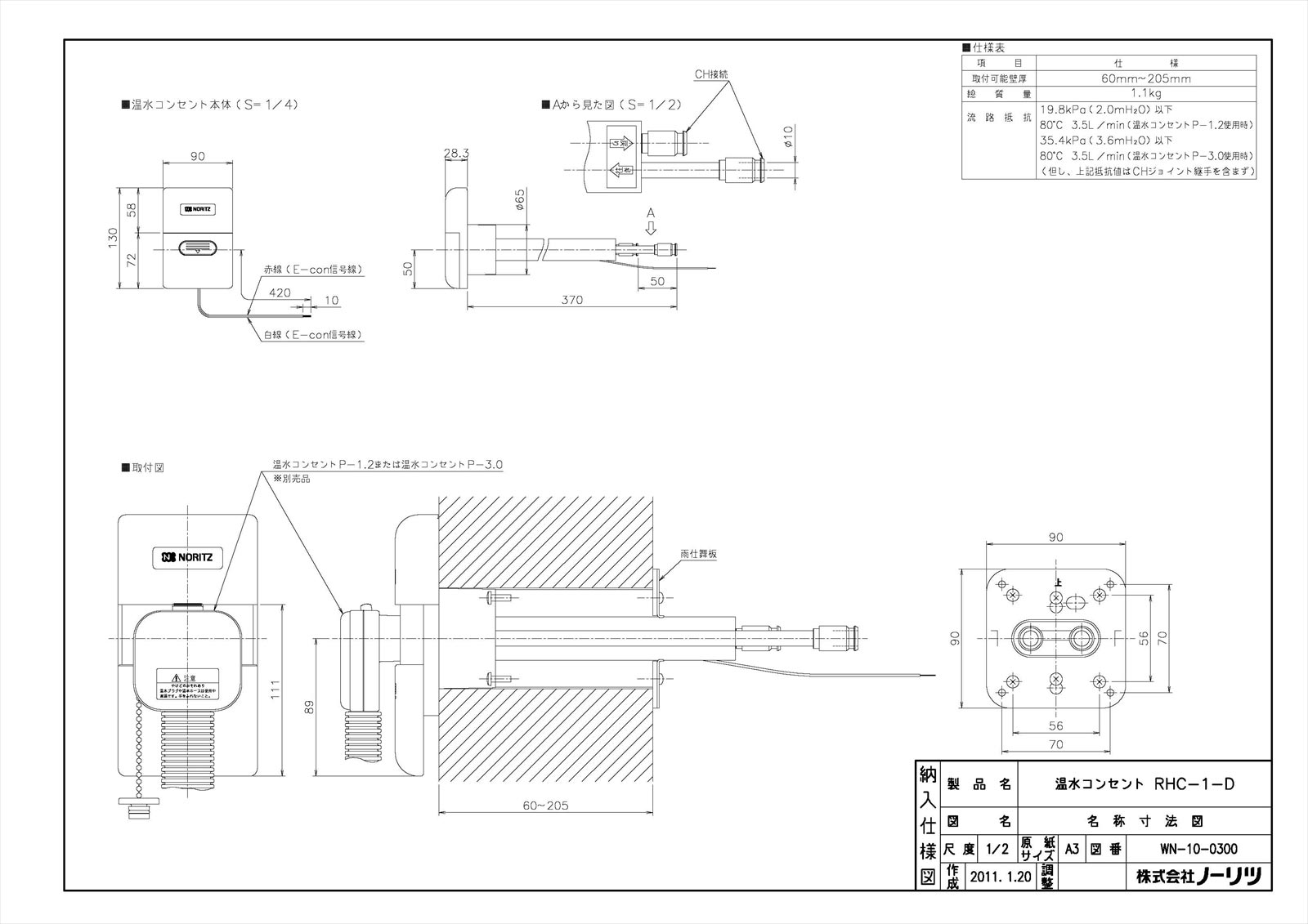 温水コンセントRHC-1-D