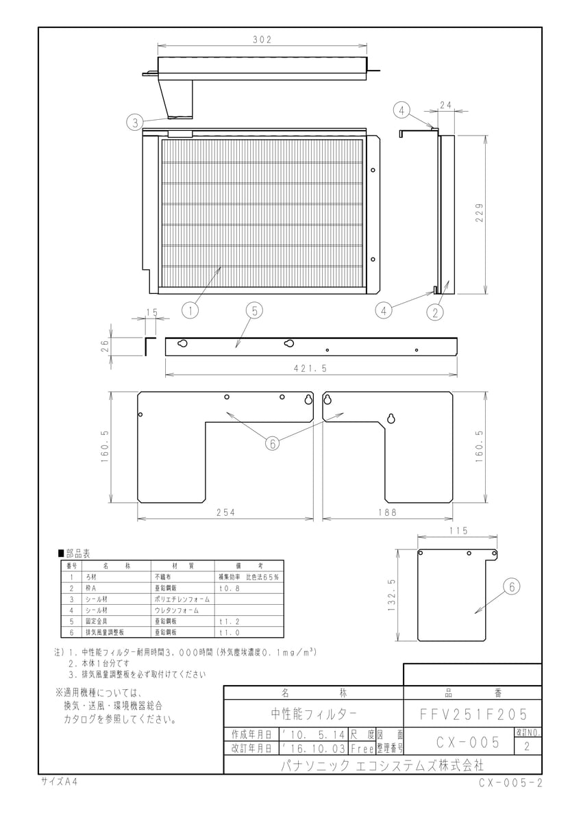 部材 中性能フィルター