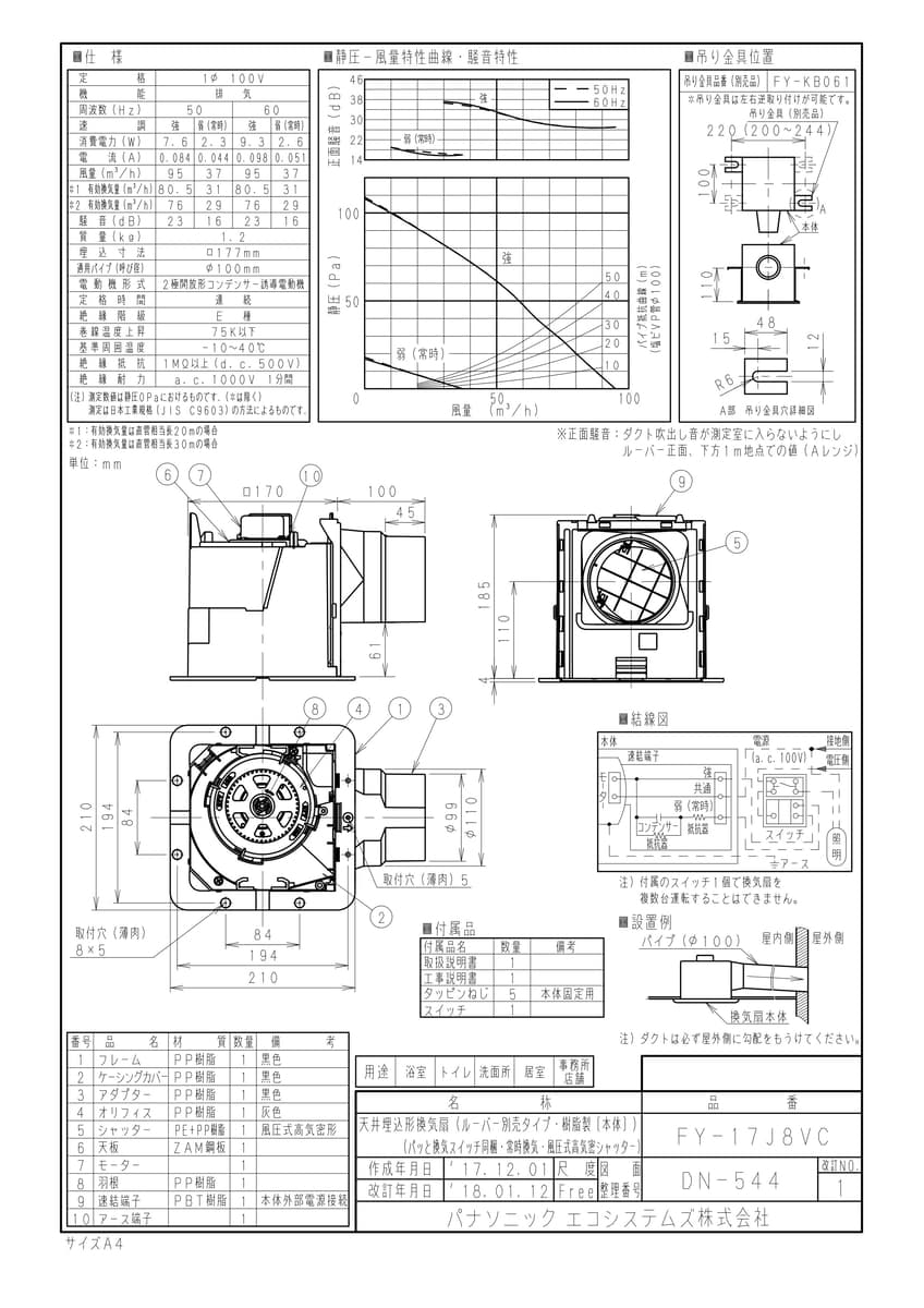 天埋換気扇(低騒音形・パッと換気SW付属)