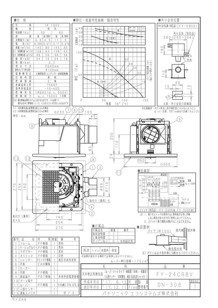 天埋換気扇(自動運転形・人感センサー)