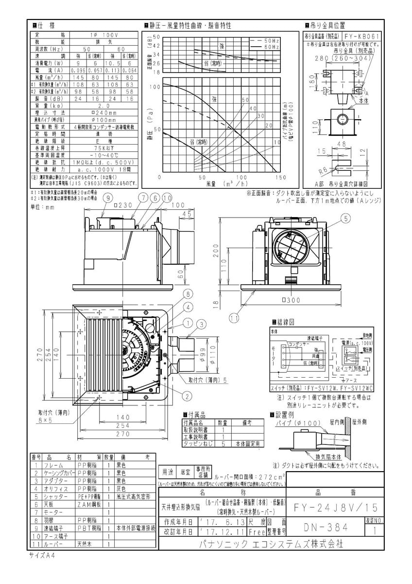 天井埋込形換気扇