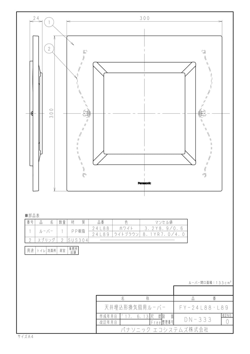 部材 天埋ルーバー インテリア・ライトブラウン