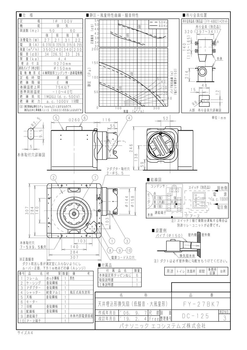 天埋換気扇(鋼板製)ルーバー別売・低騒音