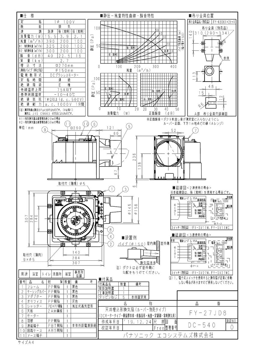 天埋換気扇(樹脂)常時排気・ルーバー別売