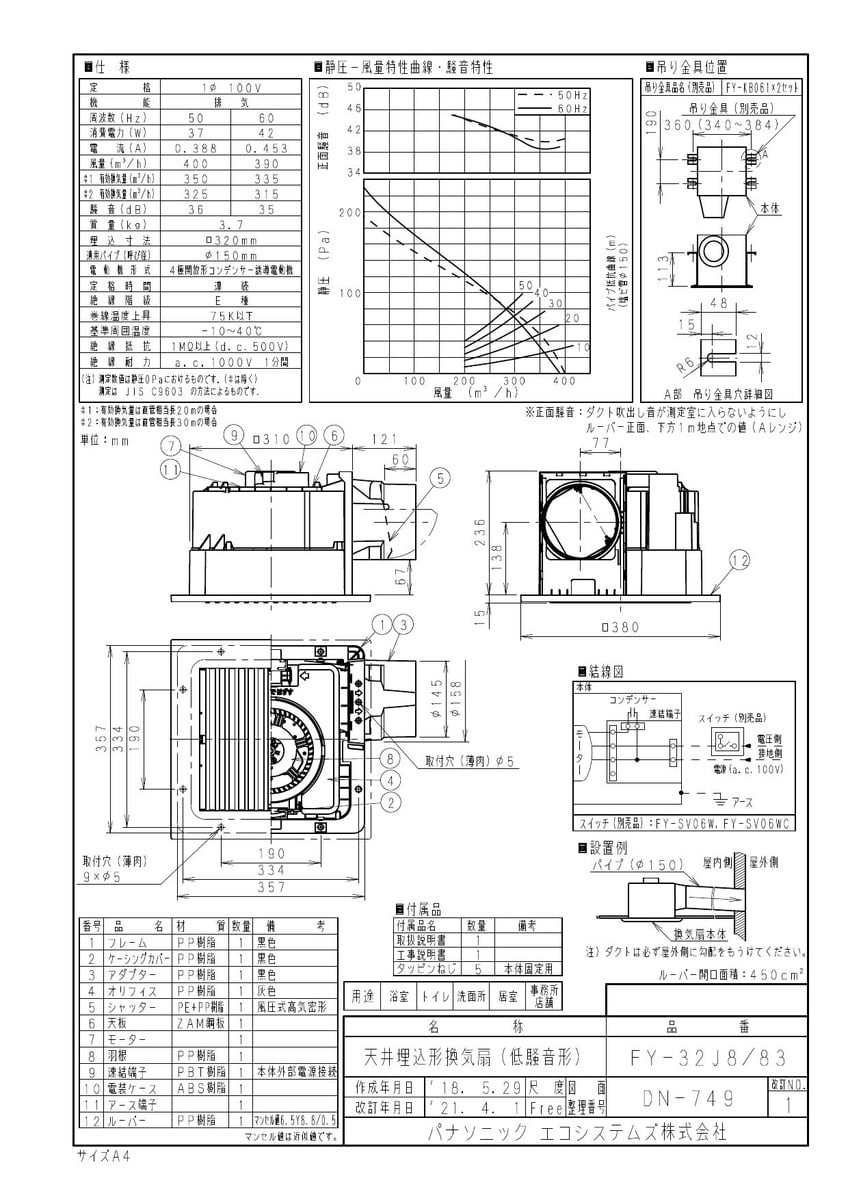 天井埋込形換気扇