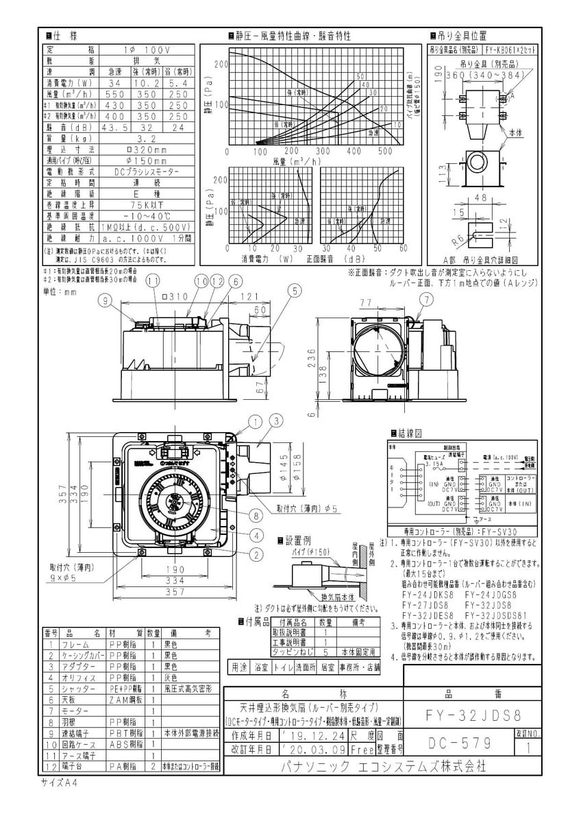 天埋換気扇(樹脂)常時排気・ルーバー別売