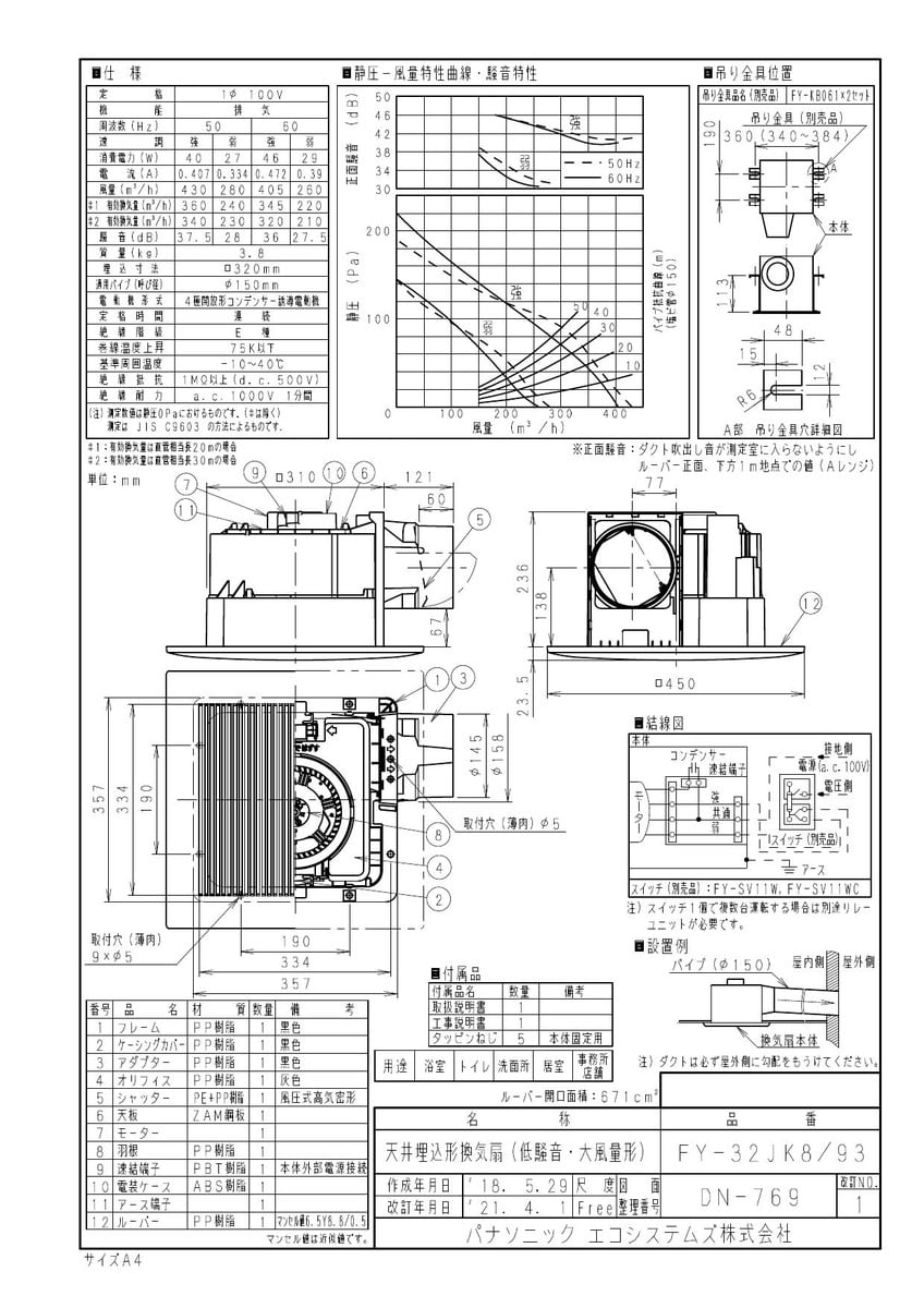 天井埋込形換気扇