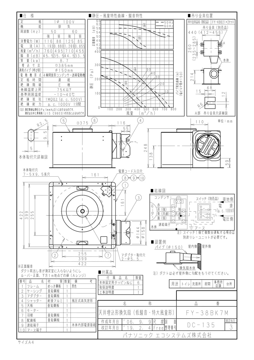 天埋換気扇(鋼板製)ルーバー別売・低騒音