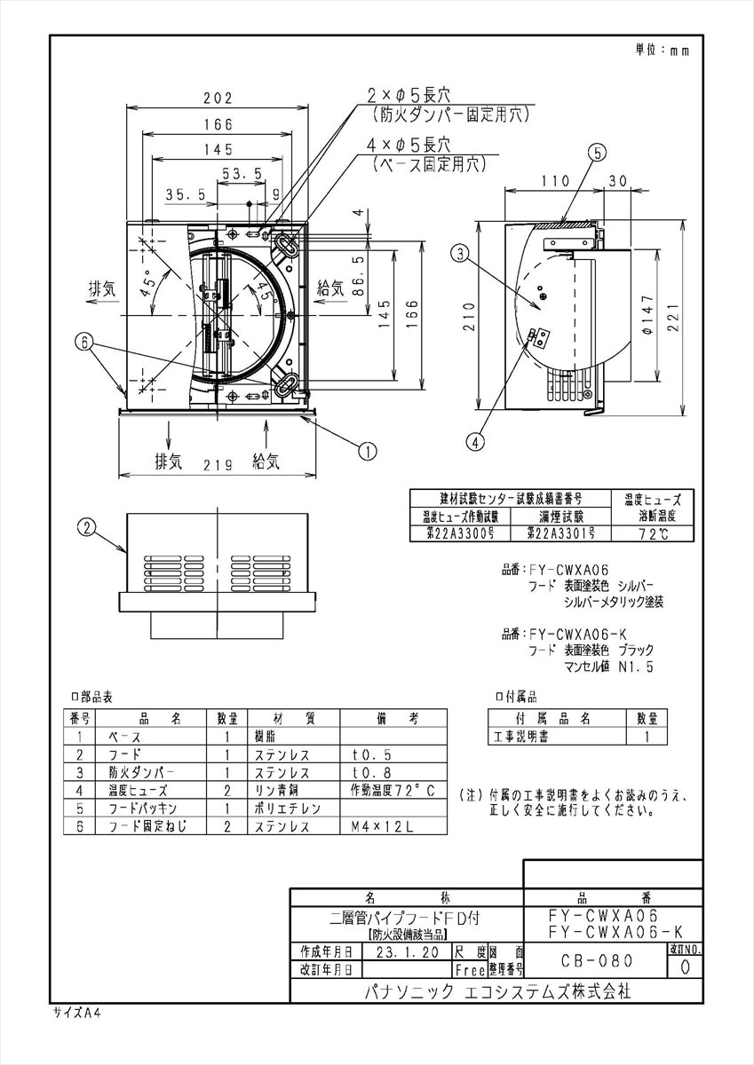 二層管パイプフードFD付