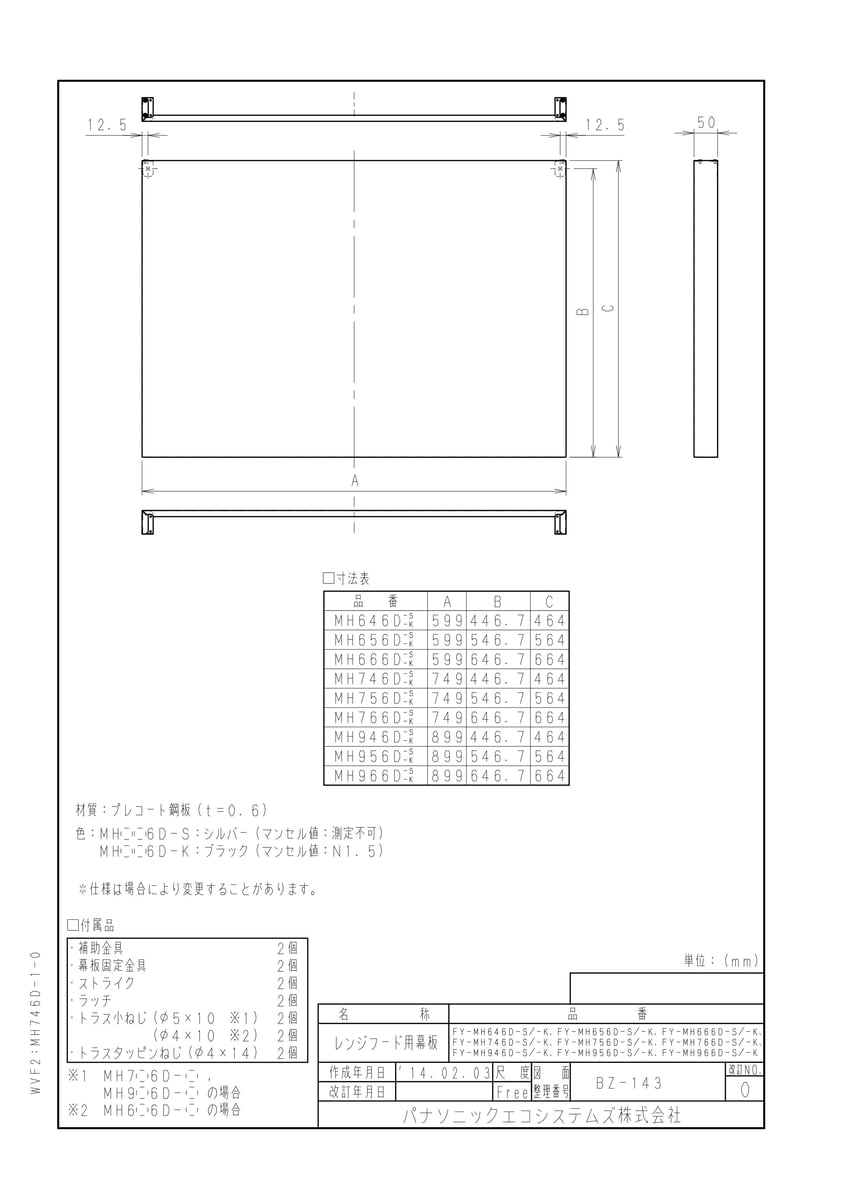部材 レンジフード 幕板