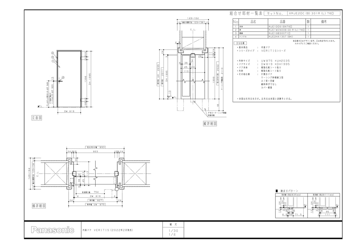※XMJE2LHB301R76PVの構成品になります