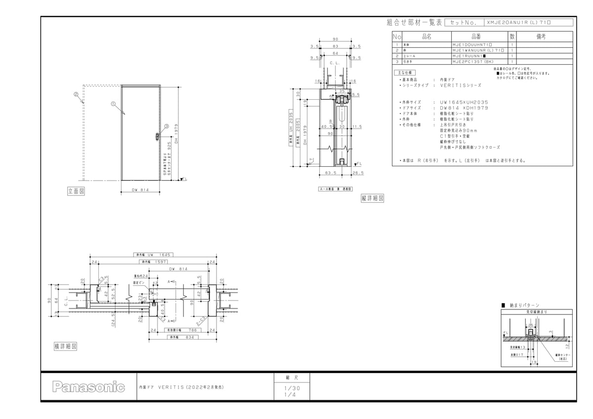 品名: ベリPA型上吊引戸本体2M814 UY