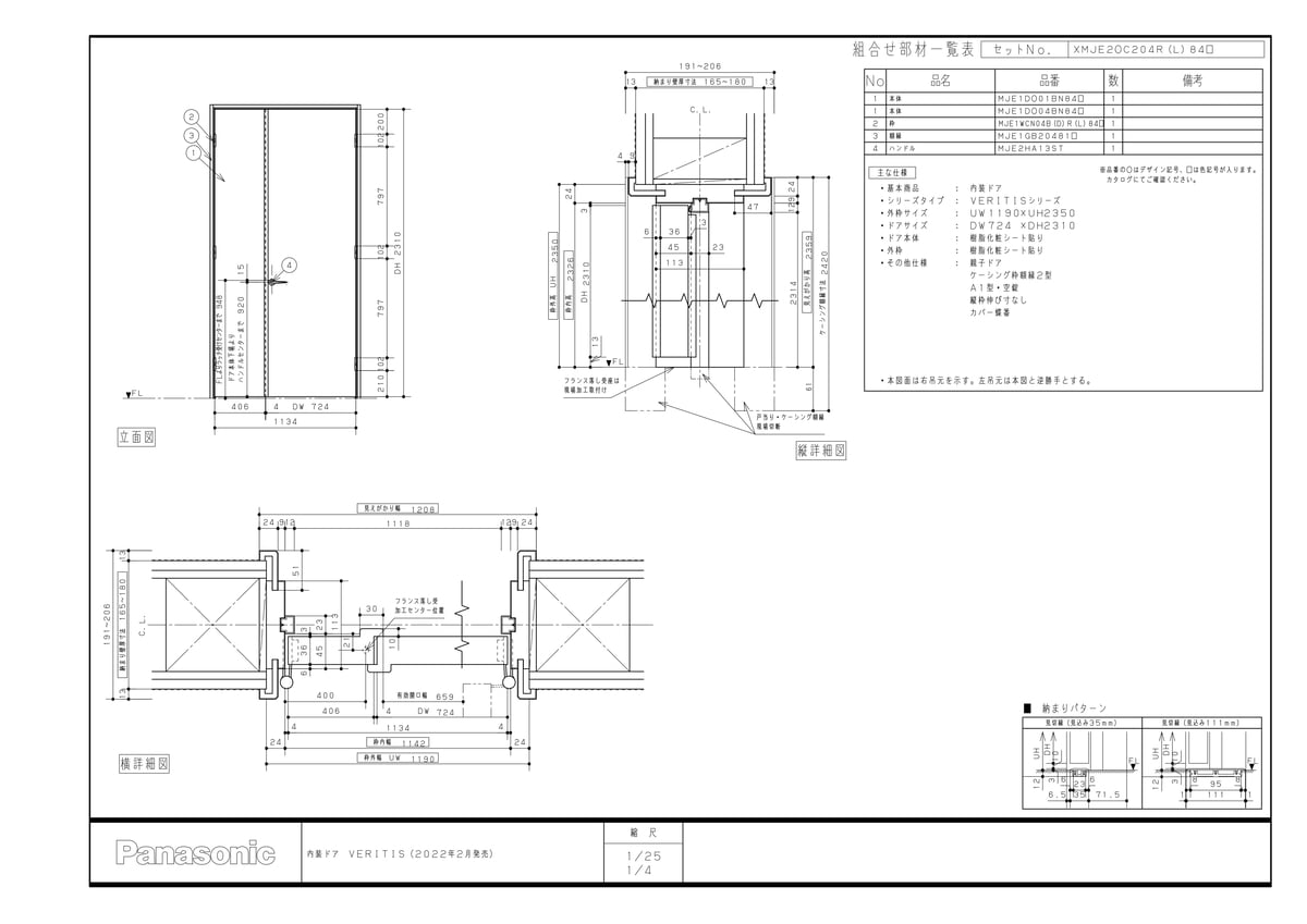 ベリティス スタンダード 開き戸 親子ドア ケーシング枠 PA型