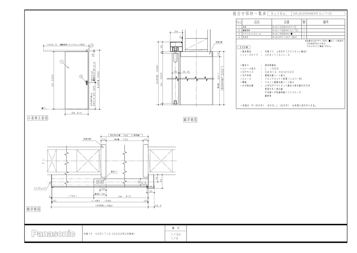 ベリティス スタンダード 上吊り引戸 アウトセット納まり 1間片引き パネル(表示錠付き) PA型