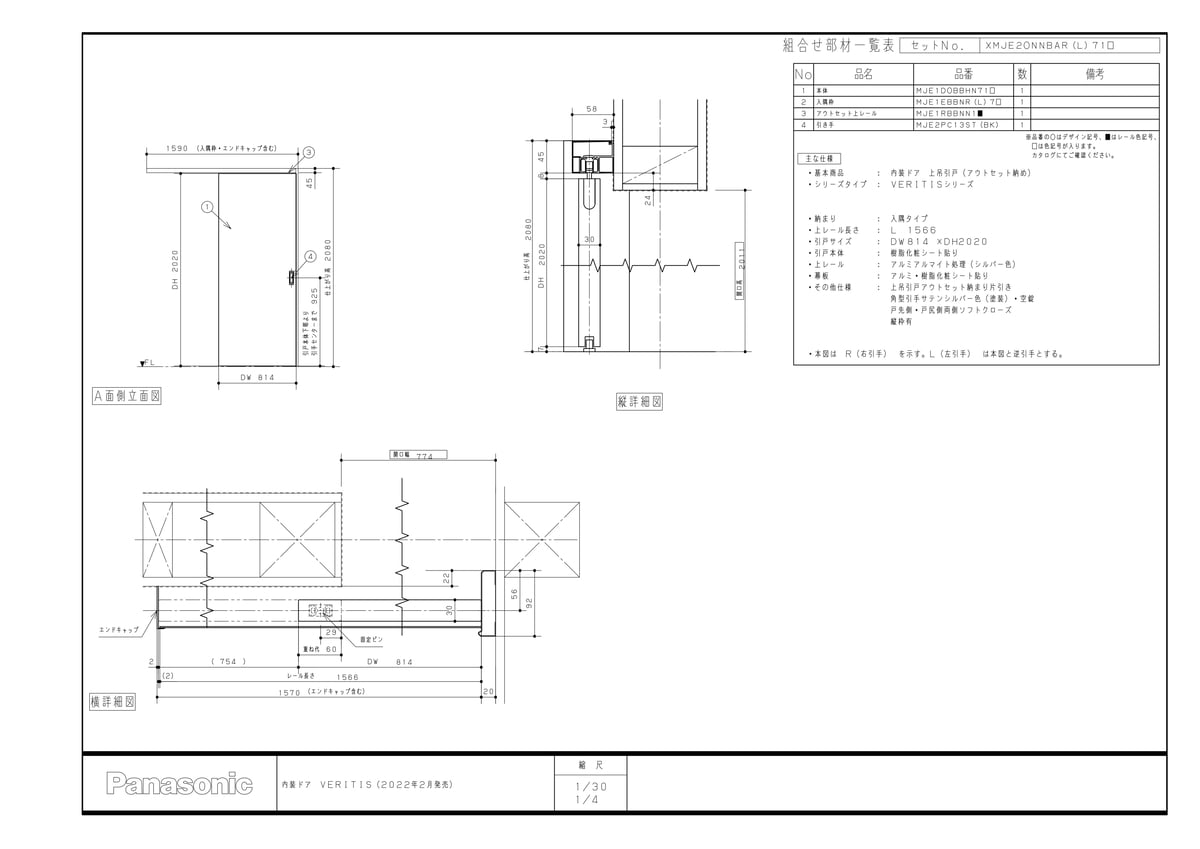 ベリティス クラフト 上吊り引戸 アウトセット納まり 片引き(入隅) PC型