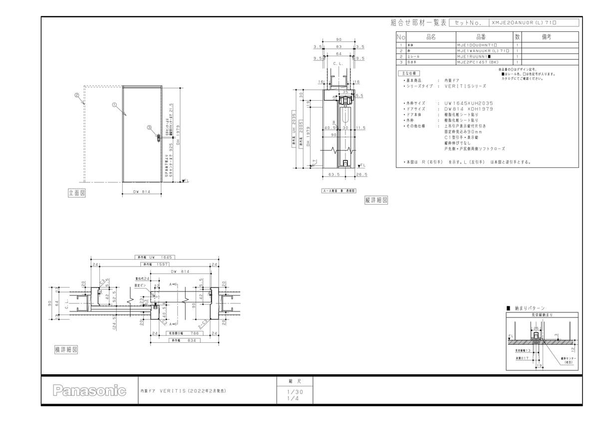 ベリティス スタンダード 上吊り引戸 1間片引き パネル(表示錠付き) 固定枠 PD型