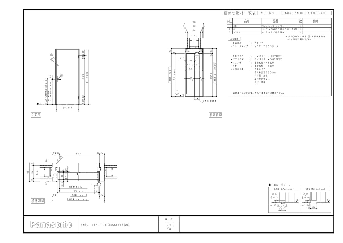 品名: ベリ90固片開枠C蝶R 2M875 UY
