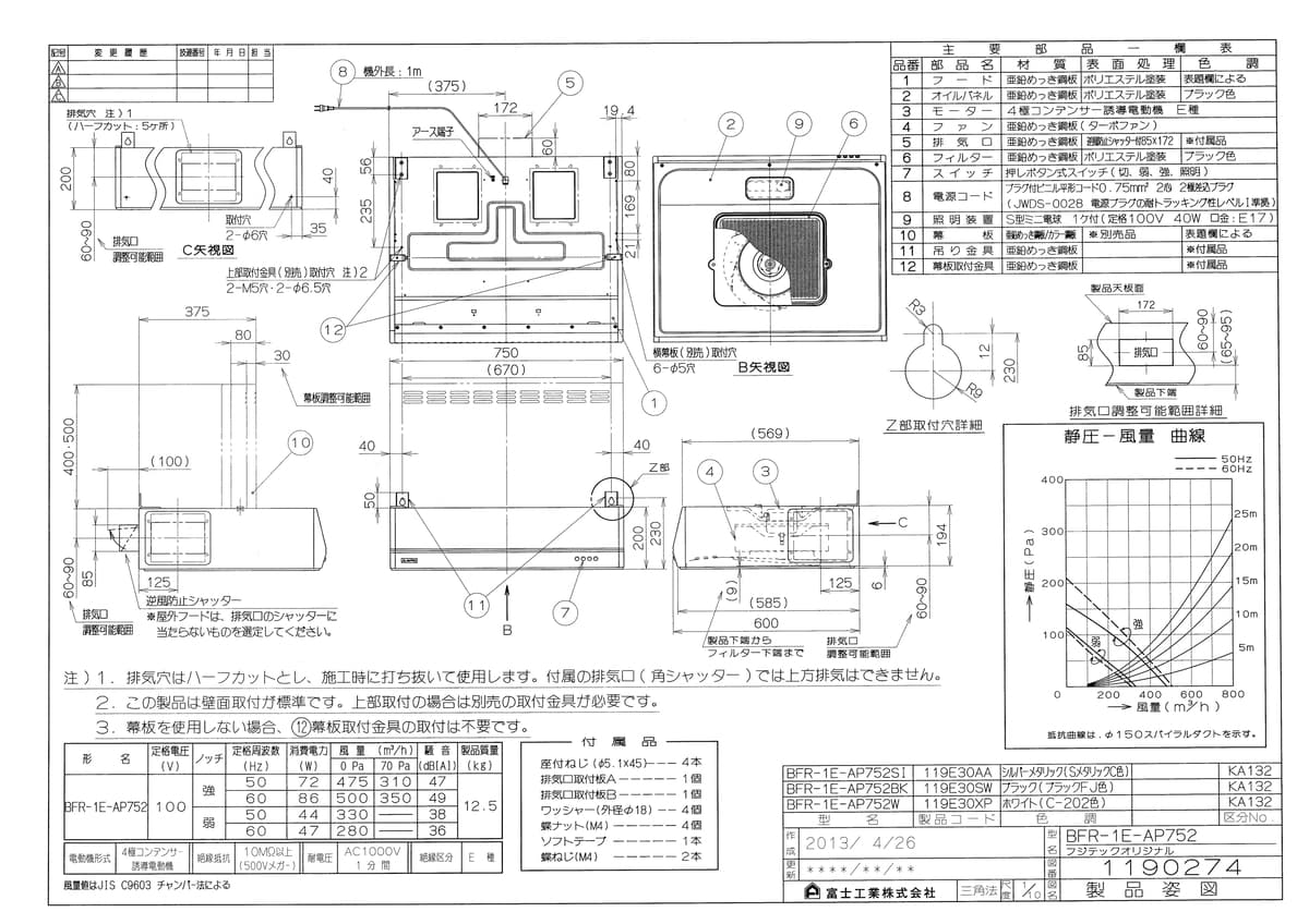 レンジフード ターボファン 幅75cm フラット型 ブラック