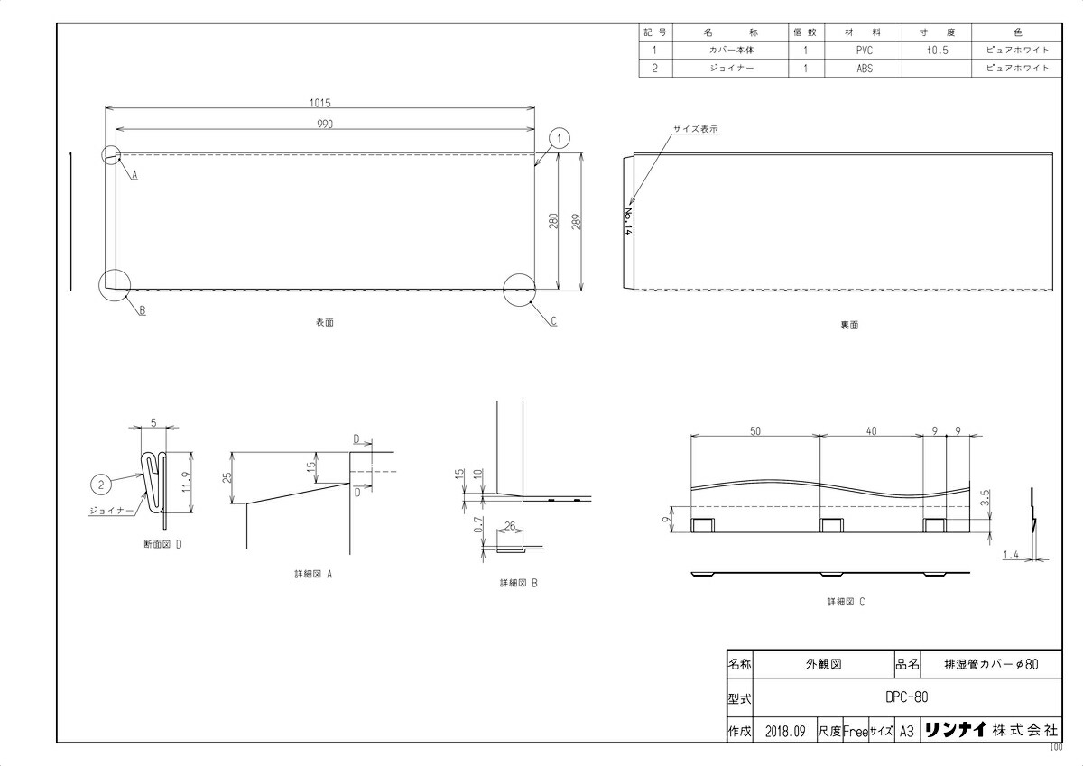 商品名 :排湿管カバー80