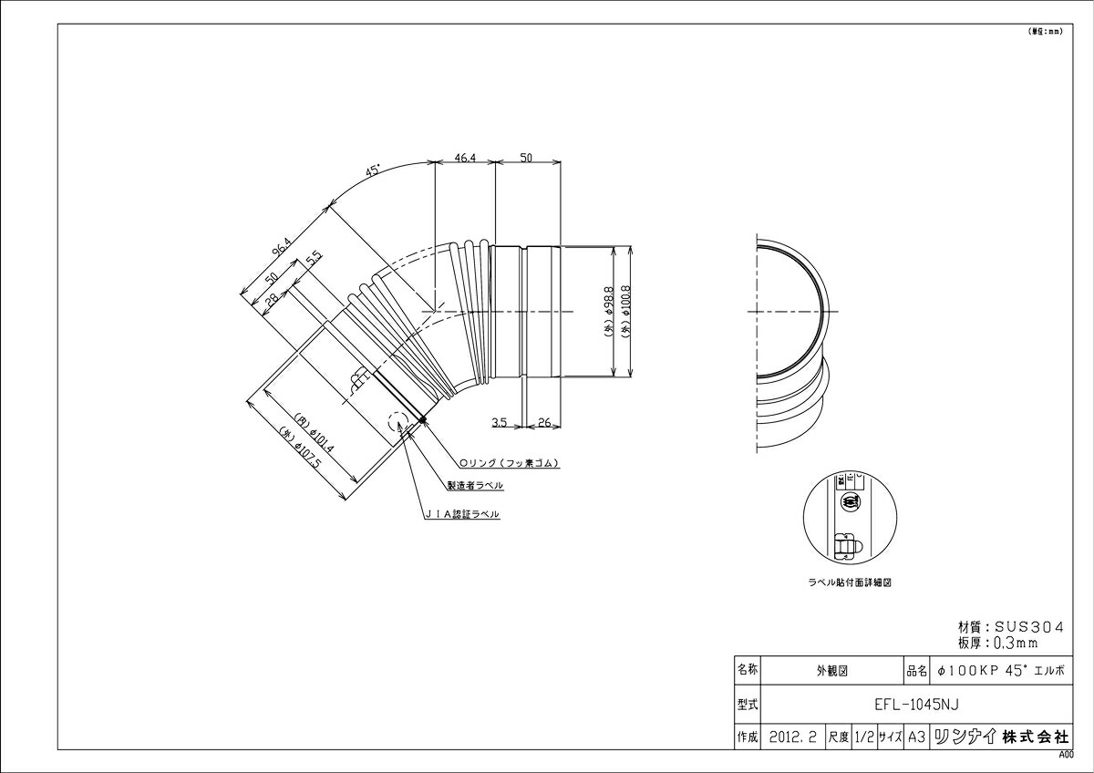 品名コード :24-6414商品名 :100エルボ40型式名 :EFL-1045NJ重量(Kg) :0.36Kg梱包縦寸法 :202梱包横寸法 :228梱包幅寸法 :134体積(M3) :0.007M3販売開始日 :2012/04/01