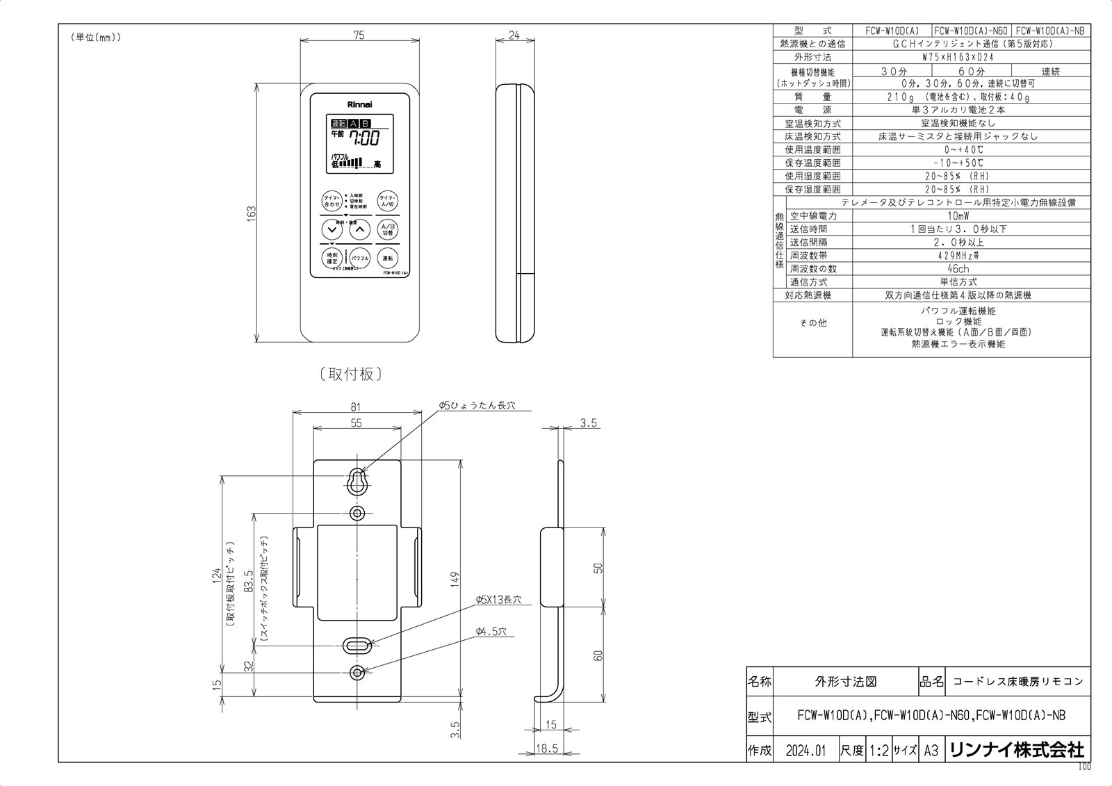 型式名:FCW-W10D(A)