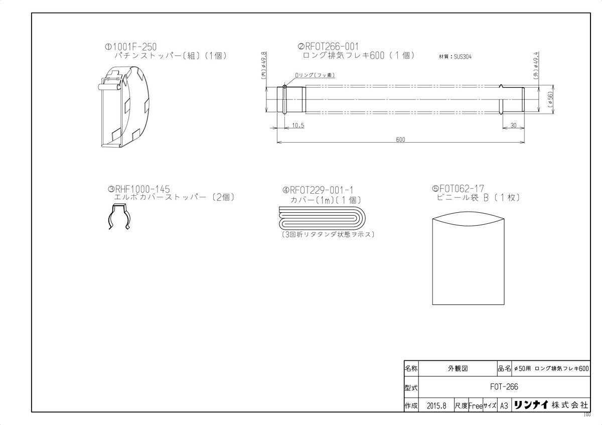 品名コード :10-7028商品名 :ロング排気フレキ型式名 :FOT-266重量(Kg) :0.6Kg梱包縦寸法 :655梱包横寸法 :60梱包幅寸法 :80体積(M3) :0.004M3販売開始日 :2015/08/21