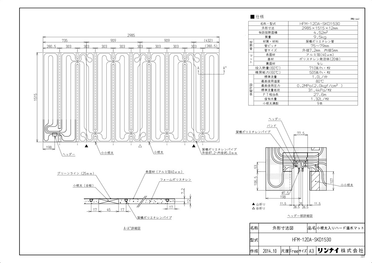 床暖房 小根太入り温水マット 新築向け 水温60度