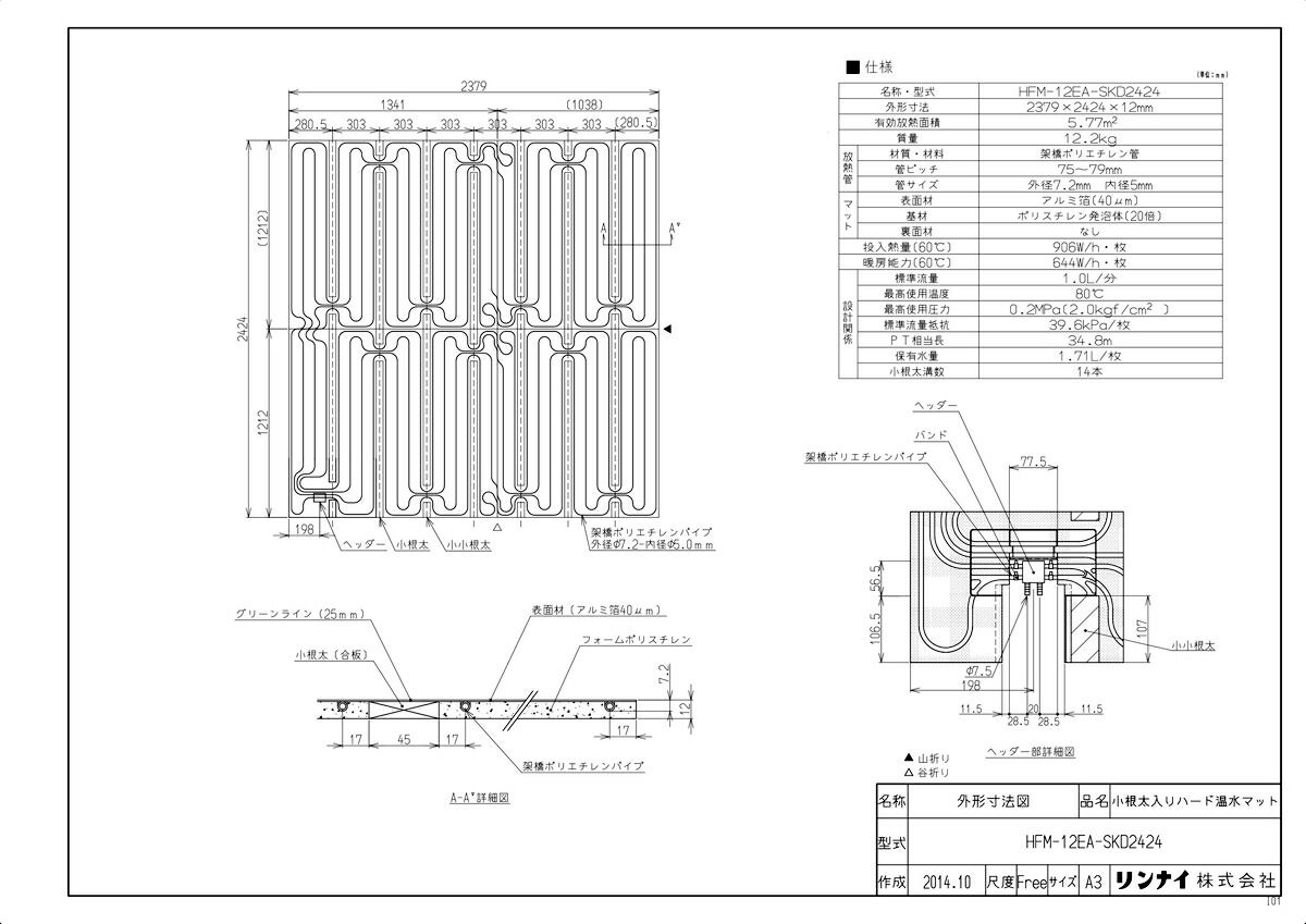 床暖房 小根太入り温水マット 新築向け 水温60度