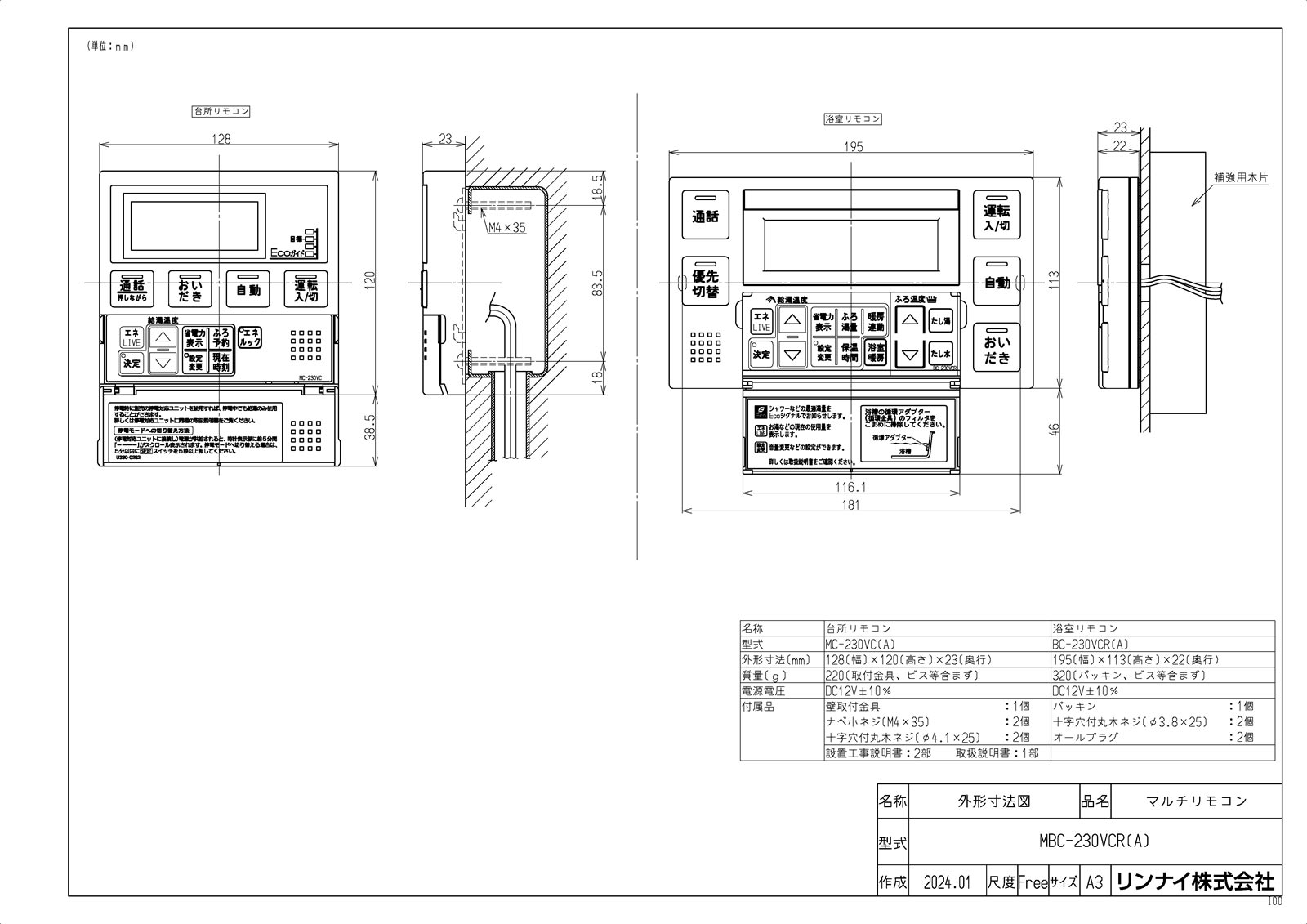 付属部品:台所リモコン用【壁取付金具:1個 ナベ小ネジ(M4×35):2個 十字穴付丸木ネジ(φ4.1×25):2個】
