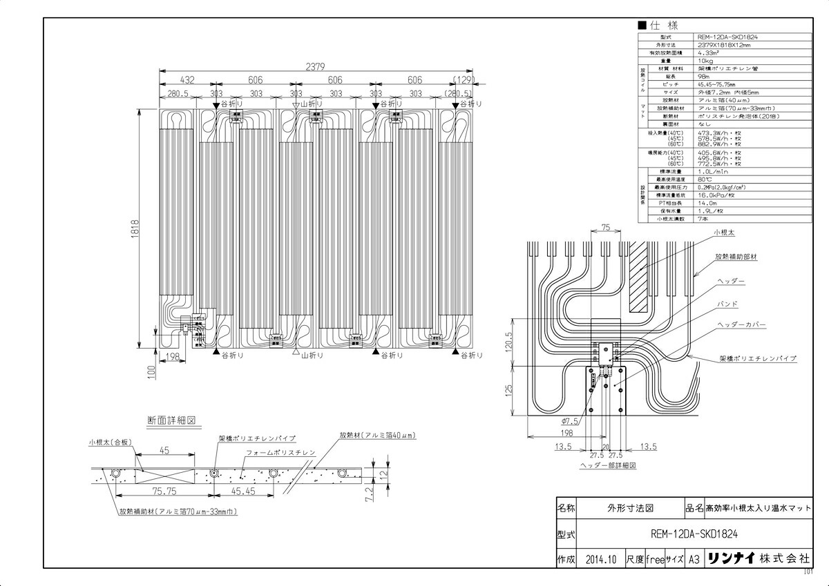 床暖房 高効率小根太入り温水マット 新築向け 水温40度