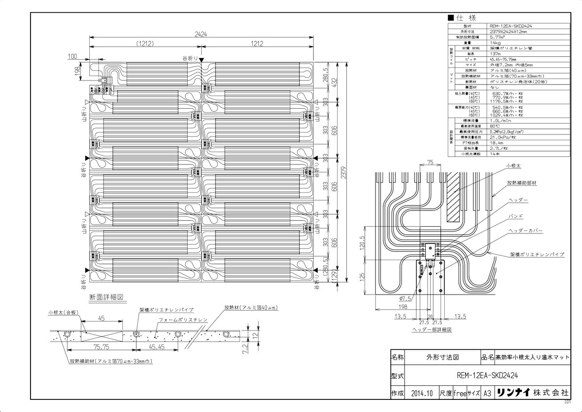 床暖房 高効率小根太入り温水マット 新築向け 水温40度