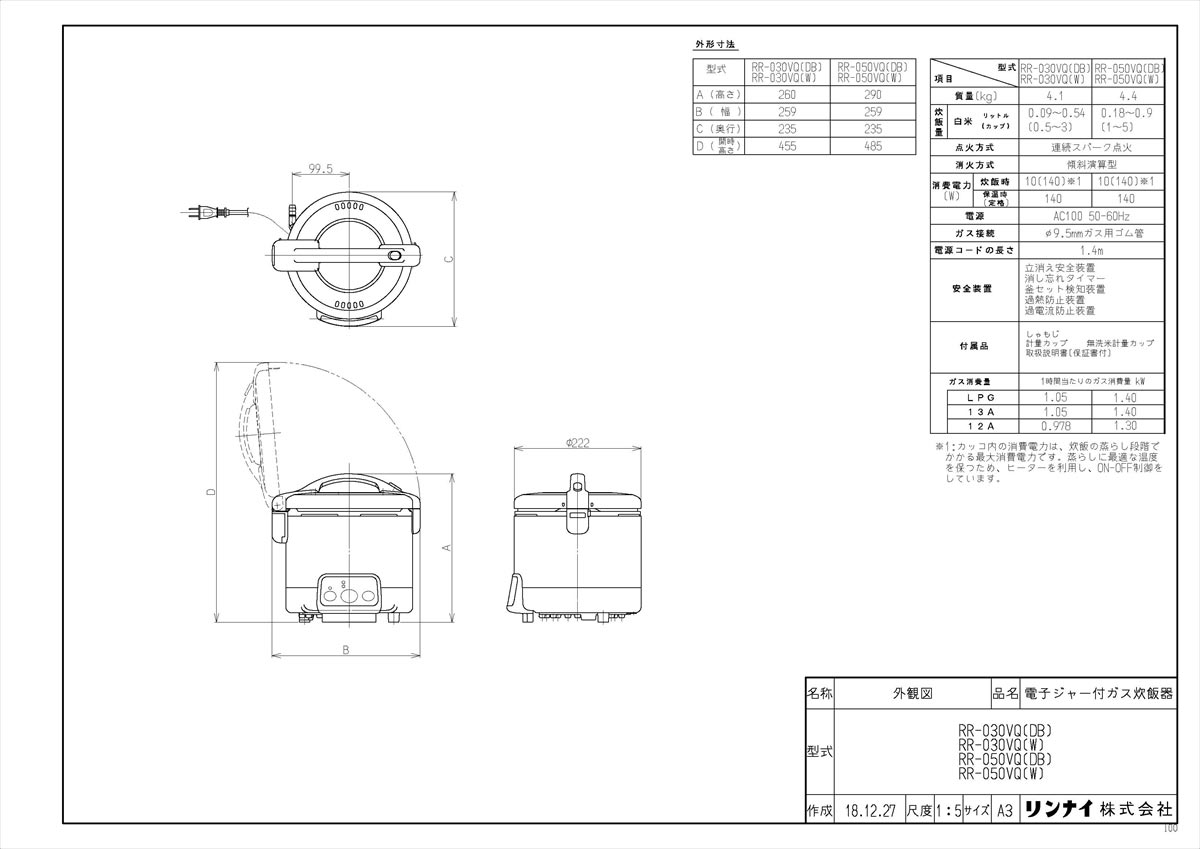 型式名:RR-050VQ(DB)