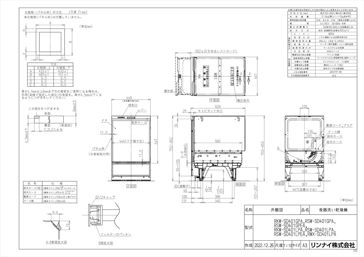 <RKW-SD401LP、RSW-SD401LPM専用>
