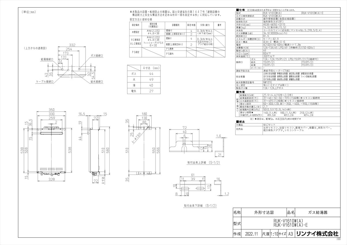 給湯専用ガス給湯器 16号 屋外壁掛型