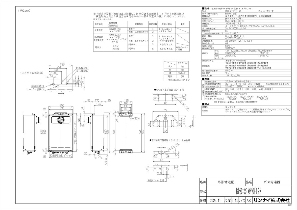 給湯専用ガス給湯器 16号 PS扉内設置型前排気