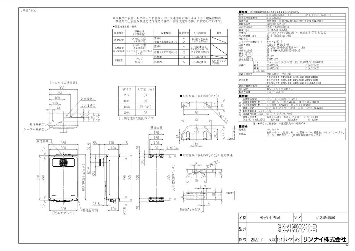 給湯専用ガス給湯器 16号 PS扉内設置型前排気