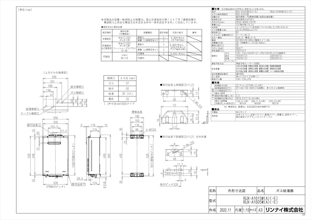 給湯専用ガス給湯器 16号 屋外壁掛型