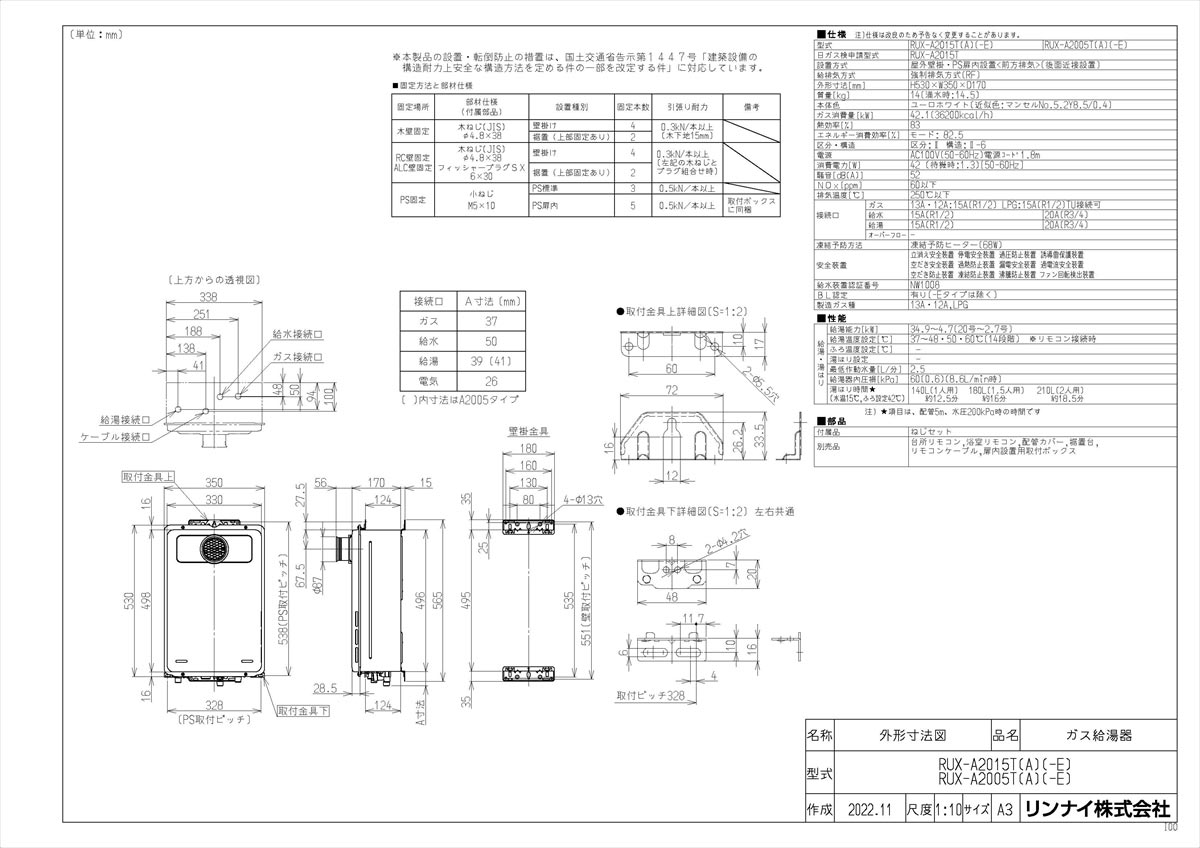 給湯専用ガス給湯器 20号 PS扉内設置型前排気