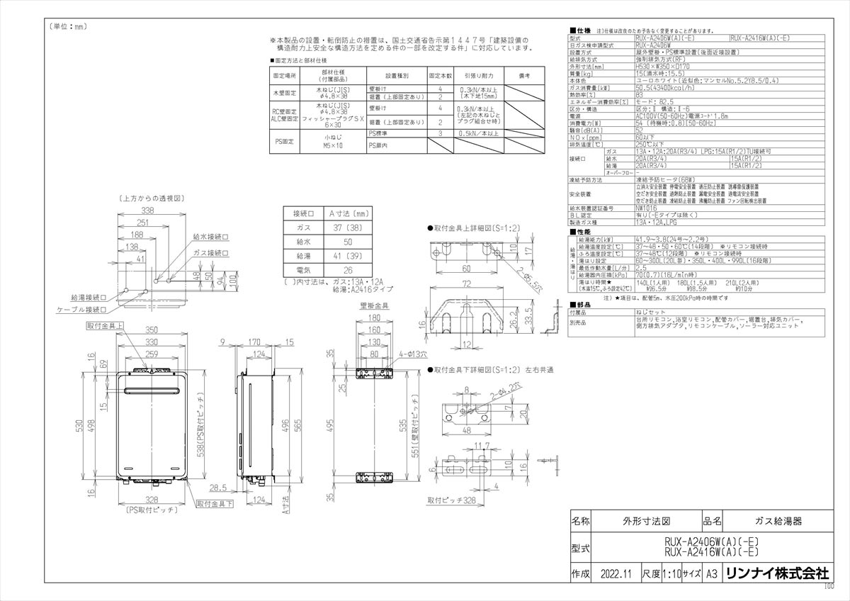 給湯専用ガス給湯器 24号 屋外壁掛型