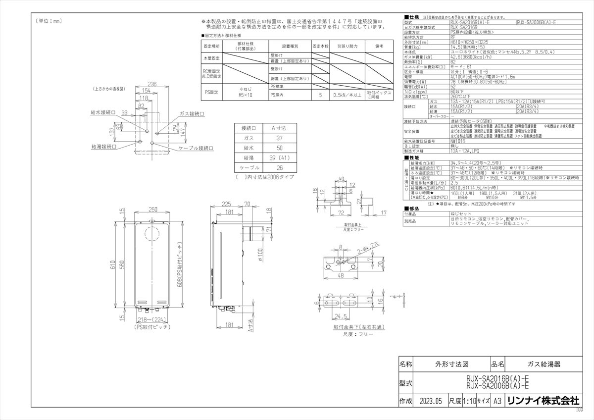 給湯専用ガス給湯器 20号 PS扉内後方排気型 エコジョーズ