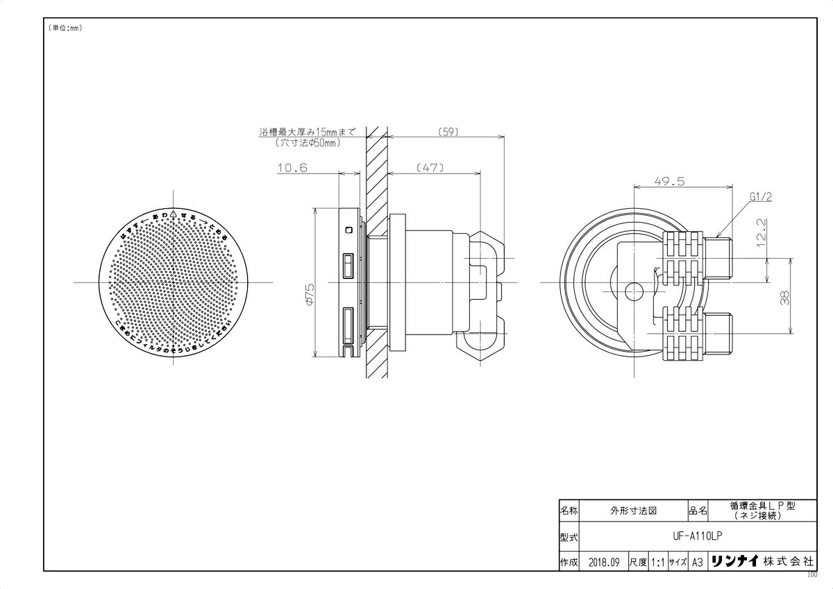 品名コード :24-1075シリーズ名 :UF-A110商品名 :循環金具型式名 :UF-A110LP重量(Kg) :0.29Kg梱包縦寸法 :385梱包横寸法 :310梱包幅寸法 :255体積(M3) :0.031M3販売開始日 :2018/12/25